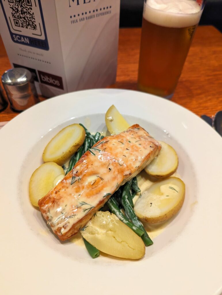 ¡VEGETARIANS AND VEGANS, WE DIDN’T FORGET ABOUT YOU!WHAT A WONDERFUL EXPERIENCE!SALMON WITH BABY POTATOES AND SAUTEED GREENS, WHITE WINE SAUCE WITH DILL.